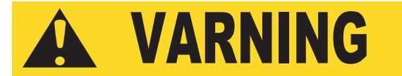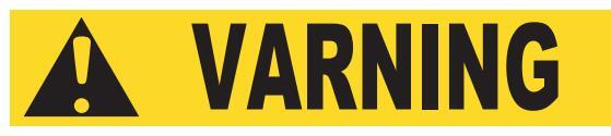 Symboler för fara: Används för att upplysa personalen om en potentiell risk för personskador. Respektera alla säkerhetsföreskrifter som föregås av denna symbol för att undvika allvarliga personskador eller dödsfall.