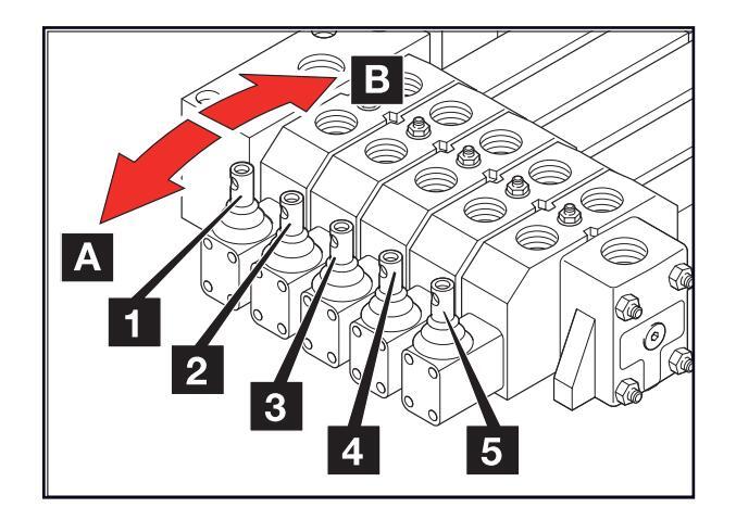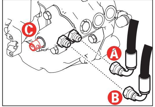 Innan ingrepp på ledningar eller på hydrauliska komponenter påbörjas ska man vara säker på att inget tryck finns kvar i anläggningen. För att säkerställa detta ska man, efter att motorns stängts av och parkeringsbromsen aktiverats, manövrera fördelarnas styrspakar (omväxlande i de olika körriktningarna) för att avlägsna allt tryck ur den hydrauliska kretsen.