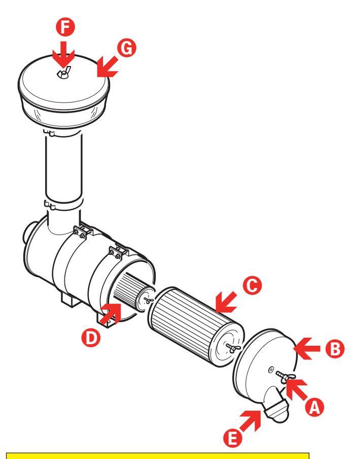 Filtrets inre element ska bytas ut varannan gång som det yttre elementet byts ut.