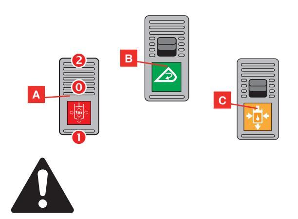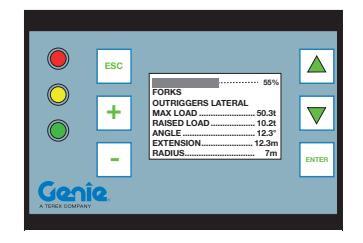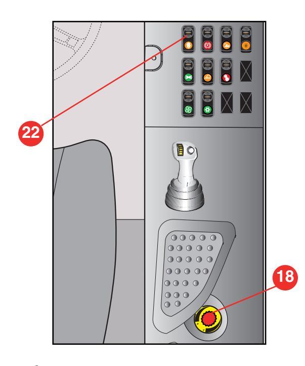 Het lastbegrenzer systeem is speciaal ontworpen om de Bediener te helpen bij het behouden van de lengtestabiliteit van de machine door middel van lampjes en geluidssignalen die waarschuwen bij het benaderen van het limiet van de lengtestabiliteit. Deze inrichting kan echter niet de ervaring van de bediener vervangen: de bediener blijft verantwoordelijk voor het uitvoeren van veilige handelingen en voor het in acht nemen van alle voorgeschreven veiligheidsvoorschriften.