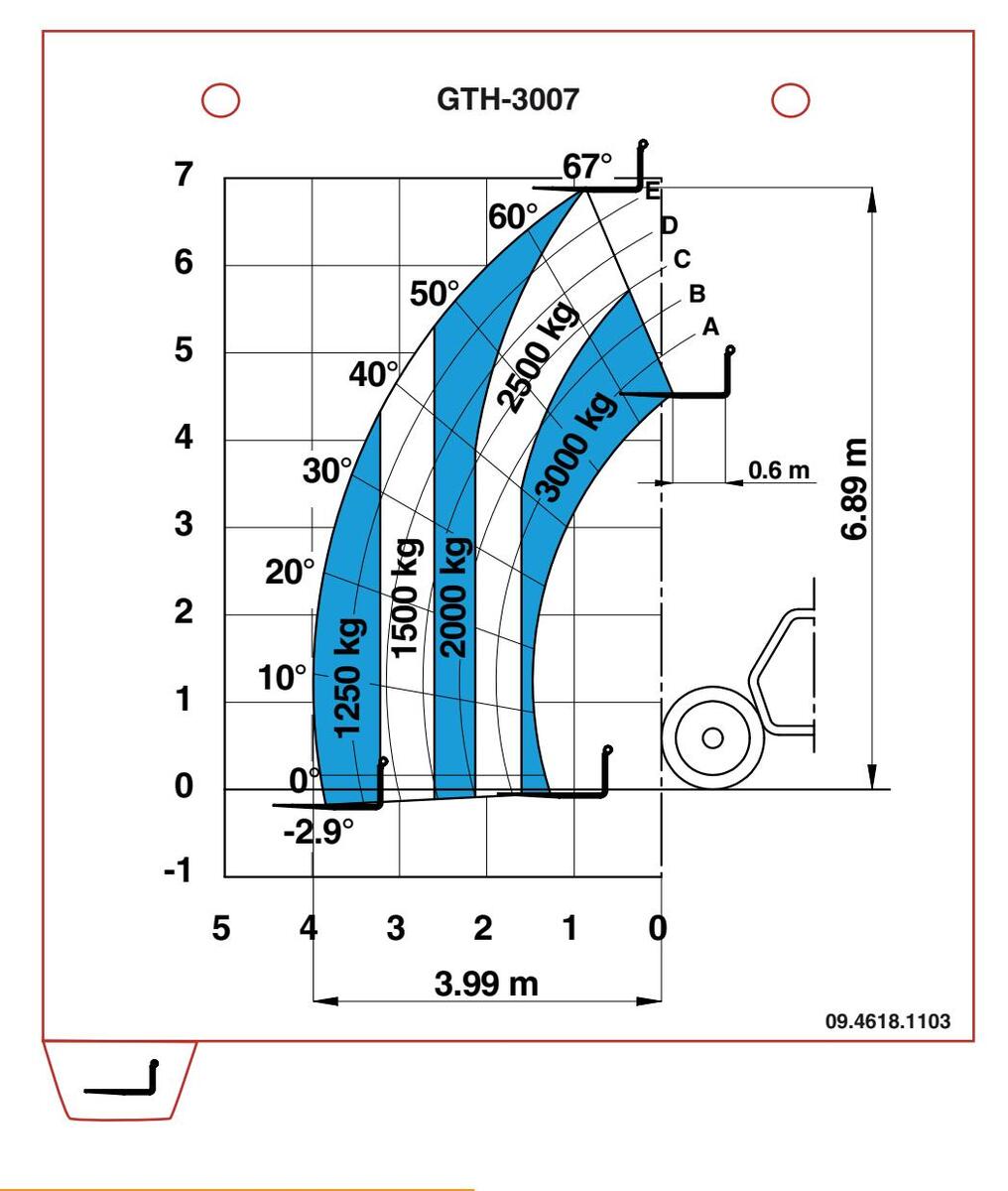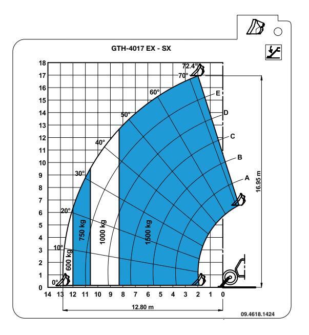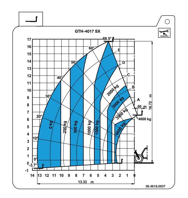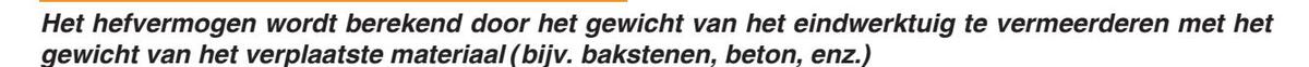 Het hefvermogen wordt berekend door het gewicht van het eindwerktuig te vermeerderen met het gewicht van het verplaatste materiaal (bijv. bakstenen, beton, enz.)