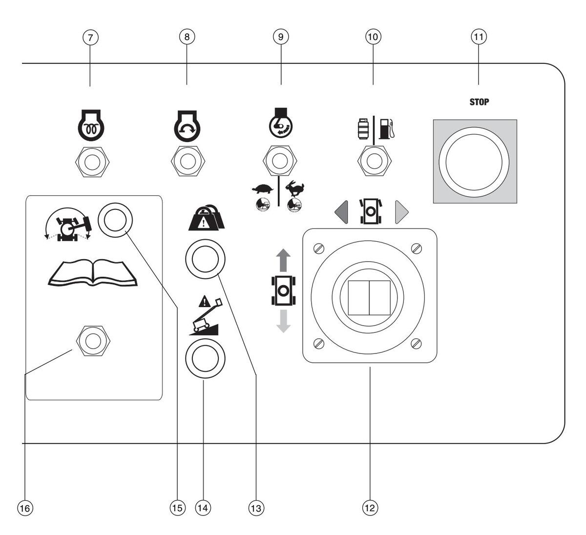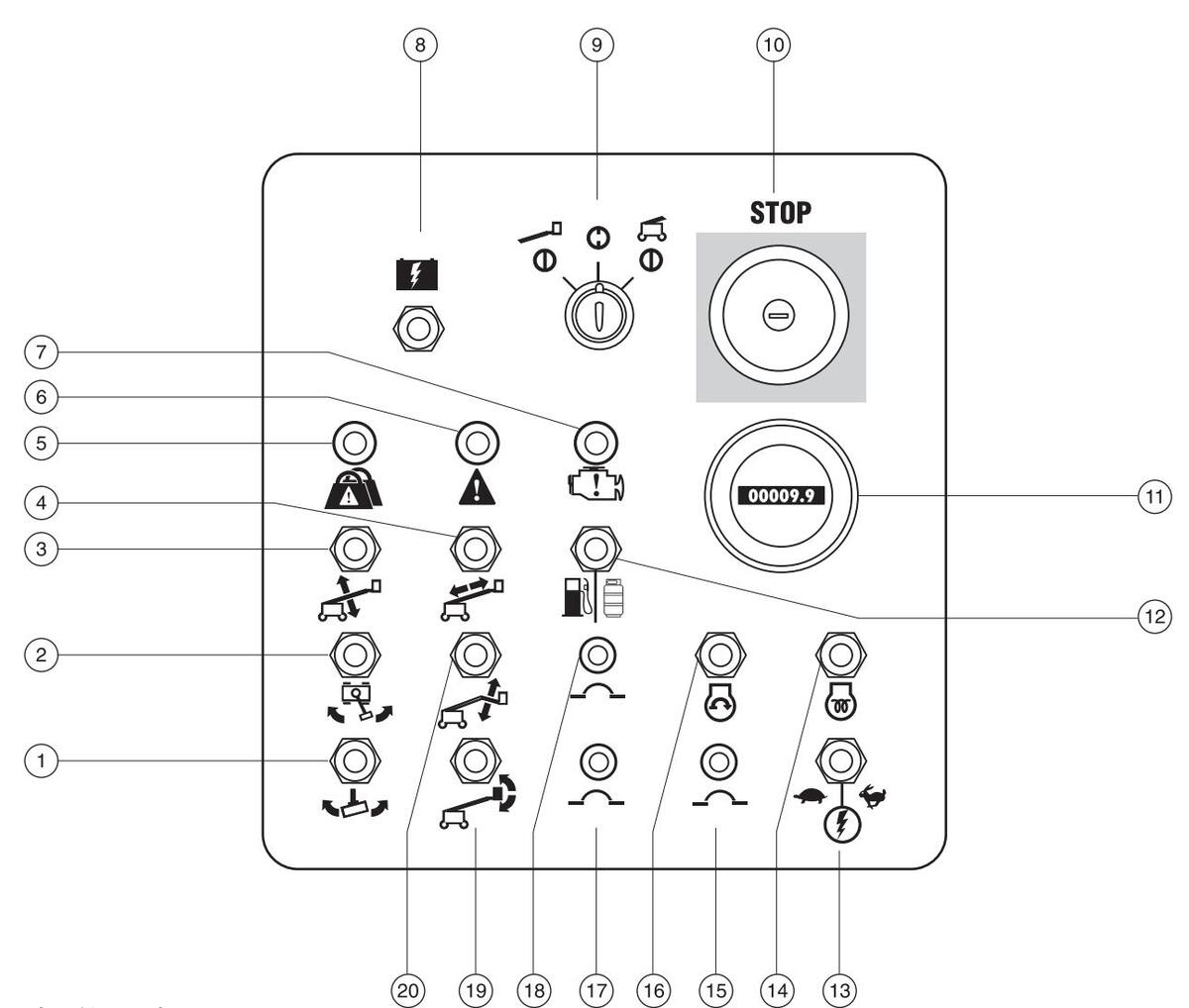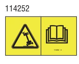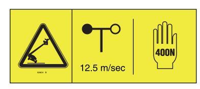 | 傾翻的危險 | 傾翻的危險 | 電擊的危險 | 最大手動操作力量 |