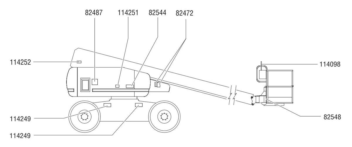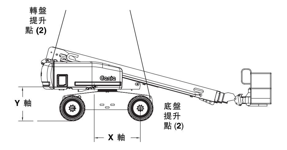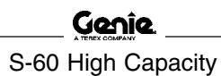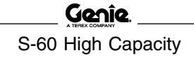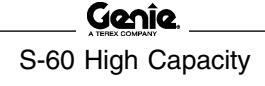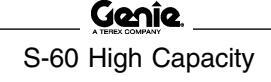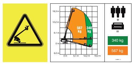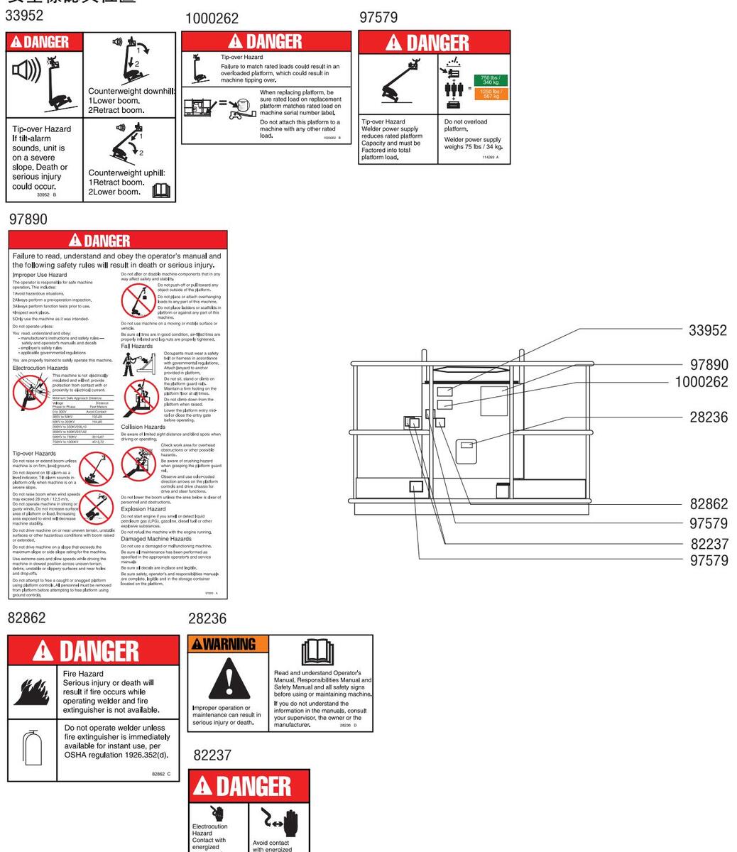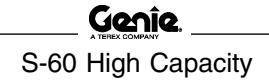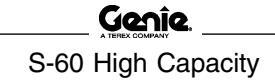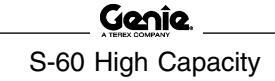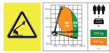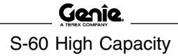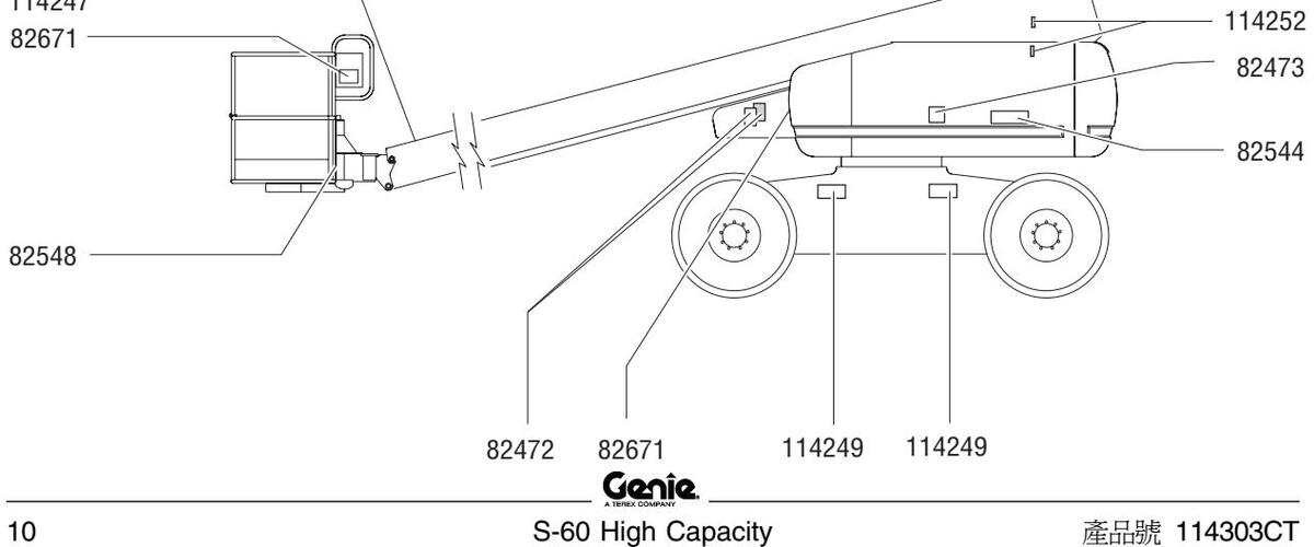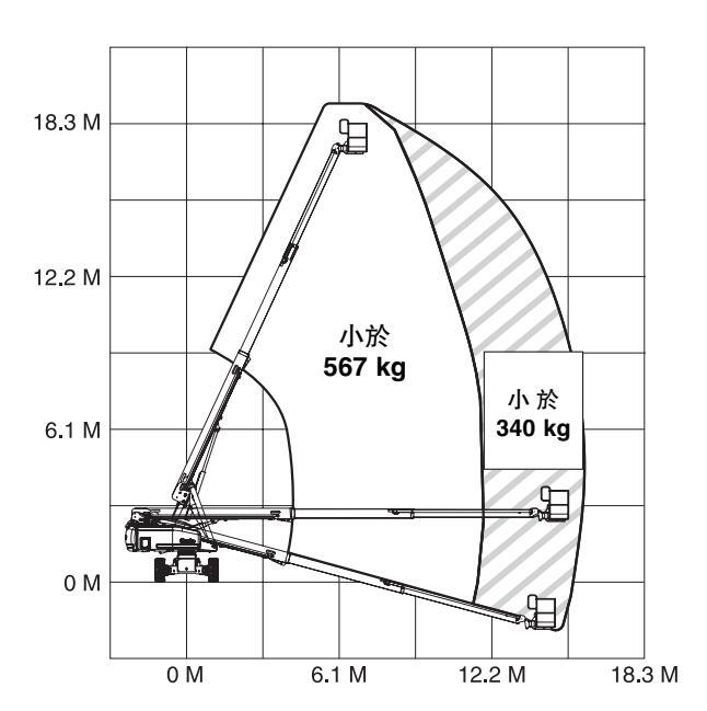 S-60 High Capacity Boom : 請勿將額定為 340 kg (未受限動作範圍)及 567 kg (受限動作範圍)的工 作臺與額定負載不同的機器連接。請參閱序號標籤以 瞭解最大的額定負載。