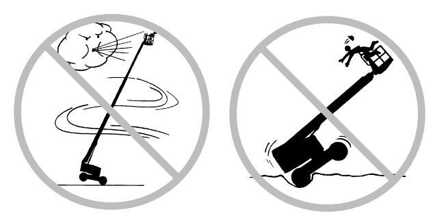 考慮到工作臺移動、電線擺動或下垂,謹防強風或 陣風。