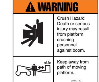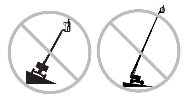 只當機器在堅固、平坦的地面上時才能升起或延伸伸 展臂。