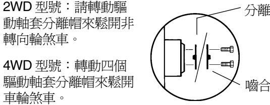 注意:在配備海綿填充式輪胎的機器上,不需進行此 項檢查。
