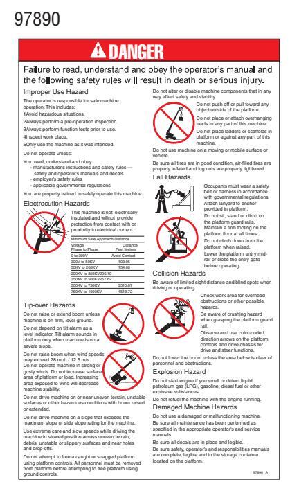 操作機器前,應閱讀、瞭解並遵守這些安全規則和操作說明。只有訓練有素和授權的人員才被允許操作此機器。應 將此手冊當作機器的一部分並永遠與機器一同存放。如果 有疑問,請與 Genie Industries 電話聯繫。