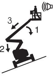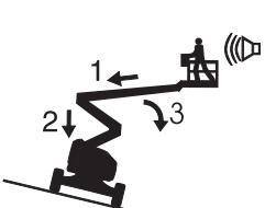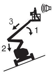 de înclinare este em ridicării. Platforma este în rampă: 1 Coborâți braţul principal 2 Retrageți/coborâți braţul secundar 3 Retrageți braţul principal |