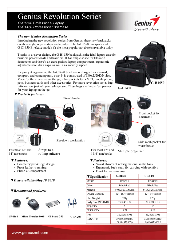 G-C1450 Briefcase models fit the most popular notebooks available today.