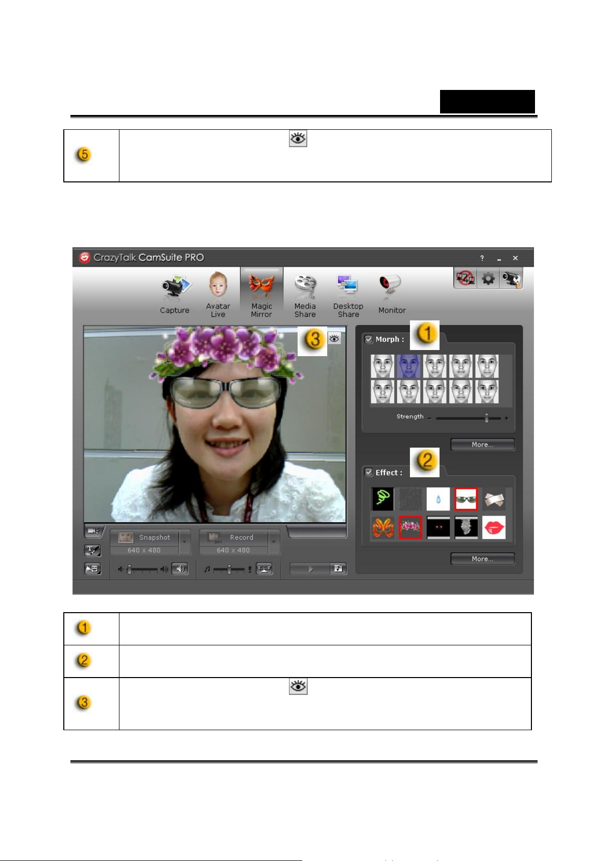 Avatar Live, Magic Mirror, Media Share un Desktop Share, kas būs redzami