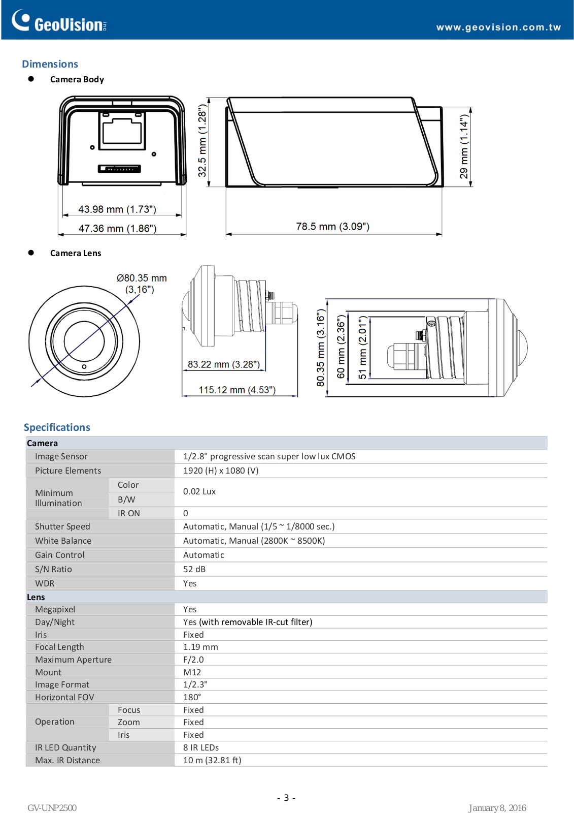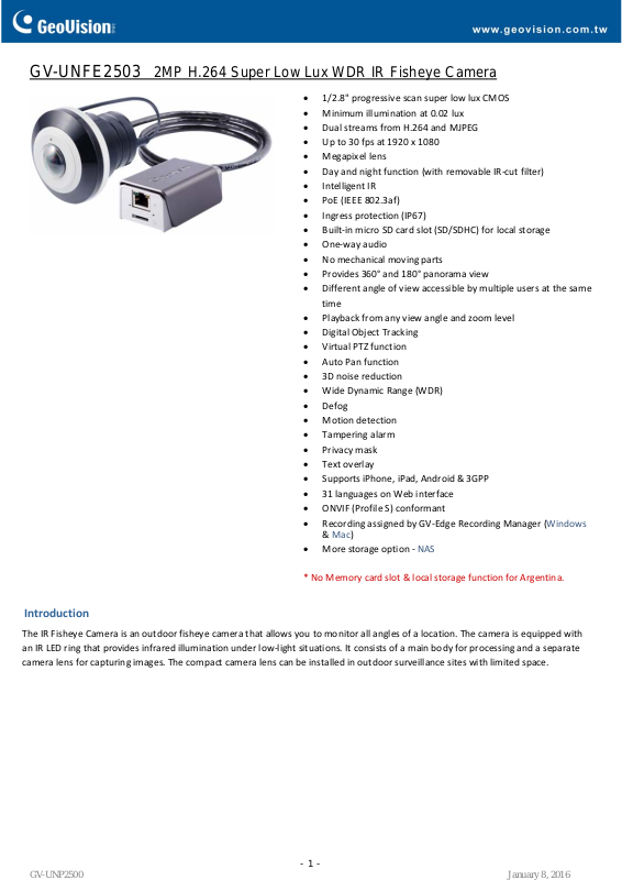 Geovision GV-UNFE2503 Specsheet
