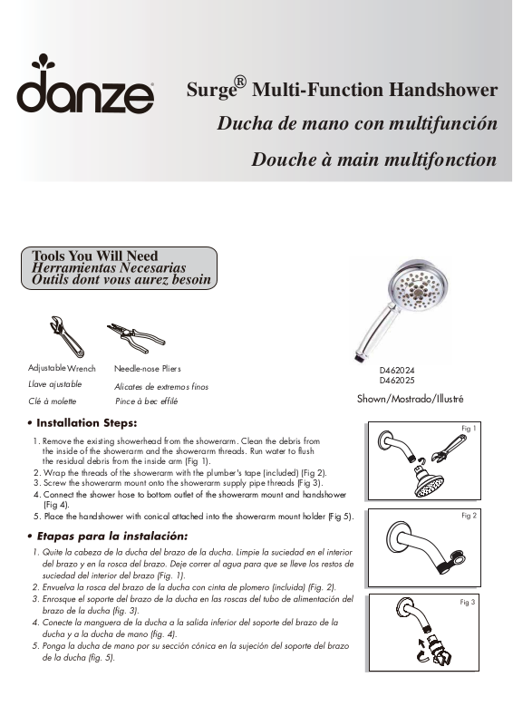 2. Wrap the threads of the showerarm with the plumber's tape (included) (Fig 2).