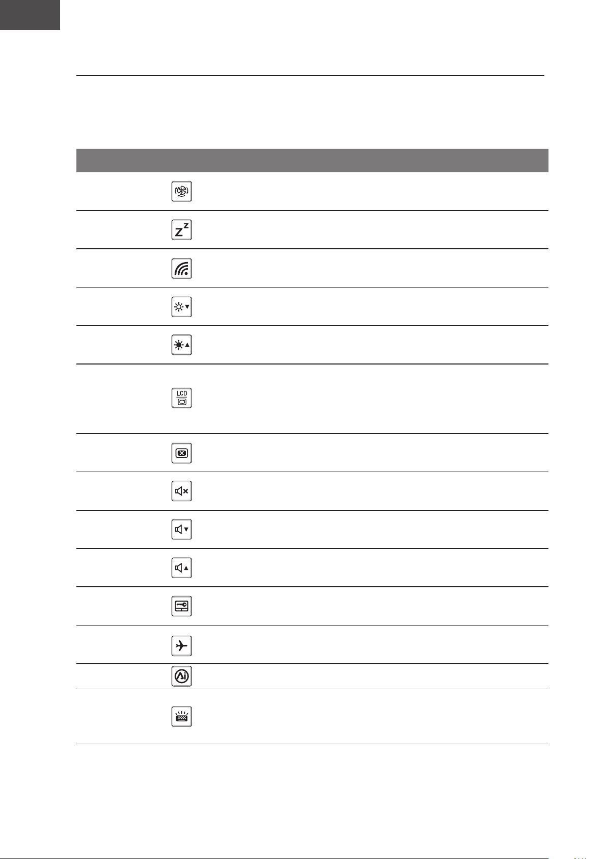 uaktywnić przyciski skrótu, naciśnij i przytrzymaj przycisk <Fn> przed naciśnięciem innego