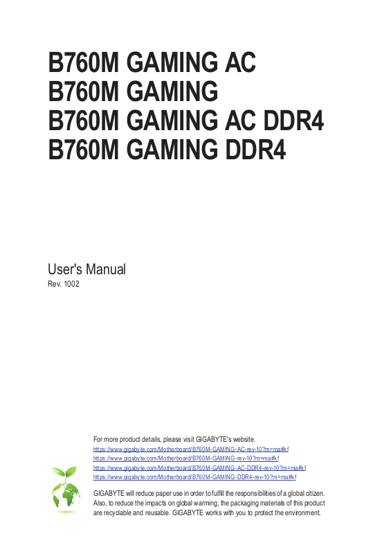 Gigabyte B760M GAMING AC, B760M GAMING, B760M GAMING AC DDR4, B760M GAMING DDR4 Manual [EN]