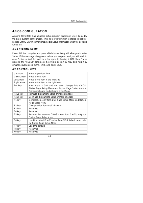 Esc keyMain Menu - Quit and not save changes into CMOS