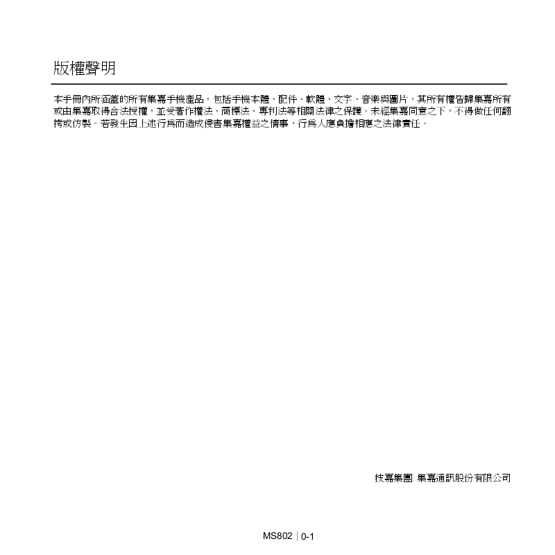 本手冊內所涵蓋的所有集嘉手機產品,包括手機本體、配件、軟體、文字、音樂與圖片,其所有權皆歸集嘉所有