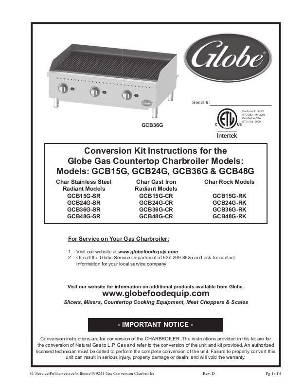 O:\Service\Public\service bulletins\999241 Gas Conversion Charbroiler Rev. D