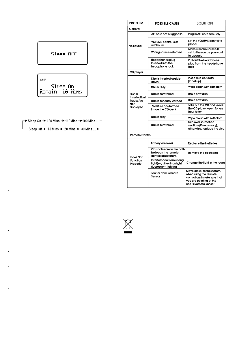 Turning off the unit also can cancel the Sleep Timer.
