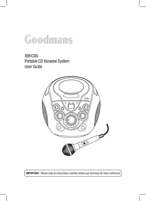 Thank you for choosing this Goodmans Portable CD Karaoke System.