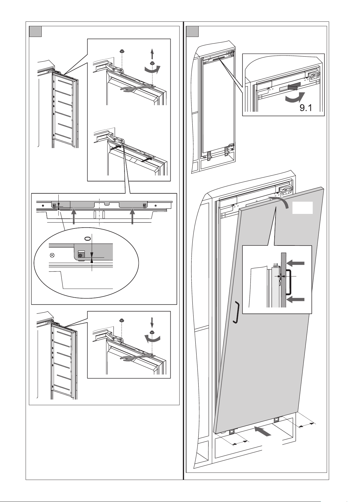 - Das Gerät darf die Wand oder die benachbarten Elemente nicht berühren.