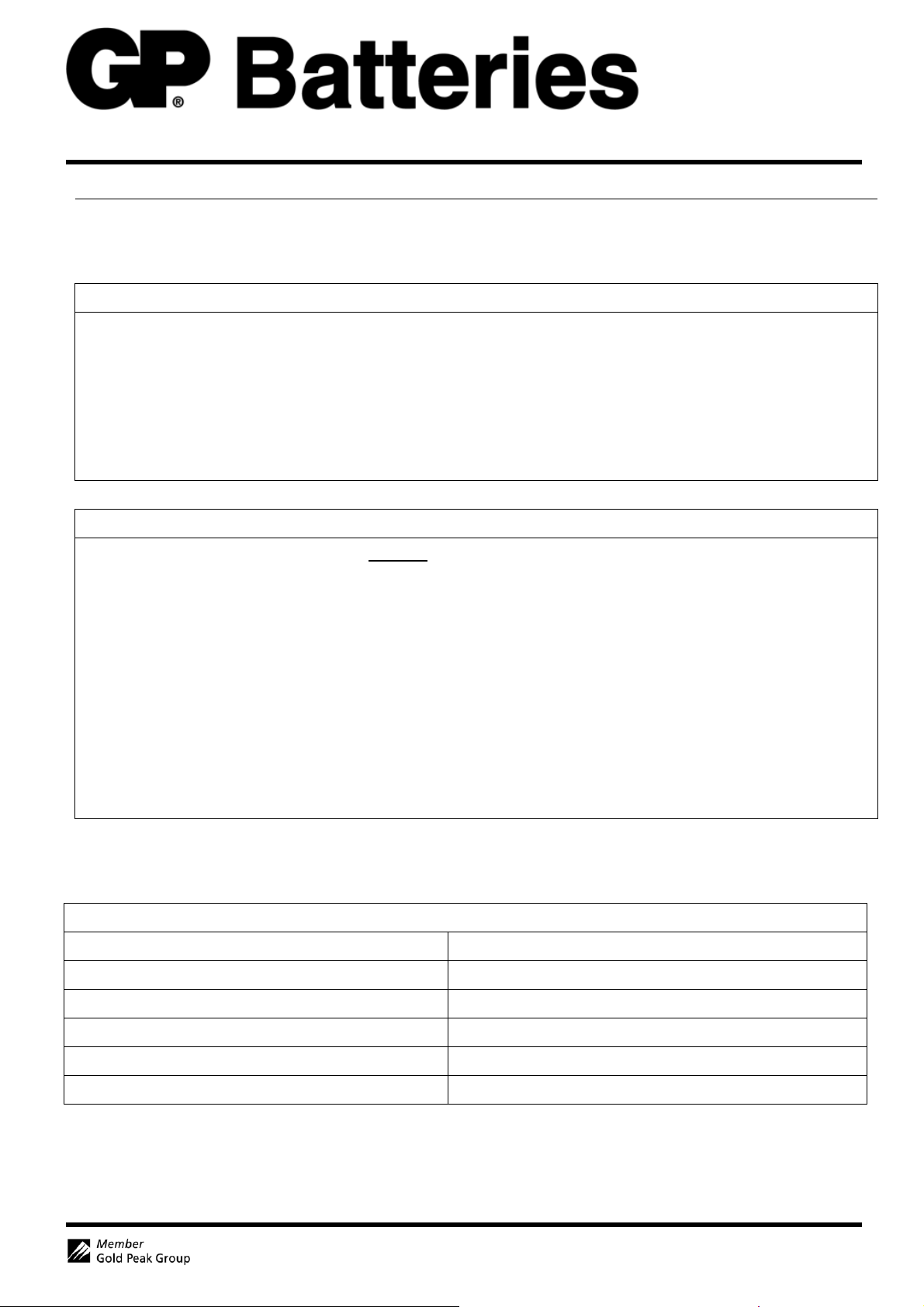 your GP Batteries International Limited representative for precautionary suggestions. Batteries normally evolve