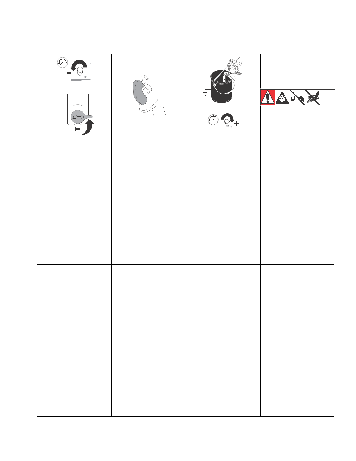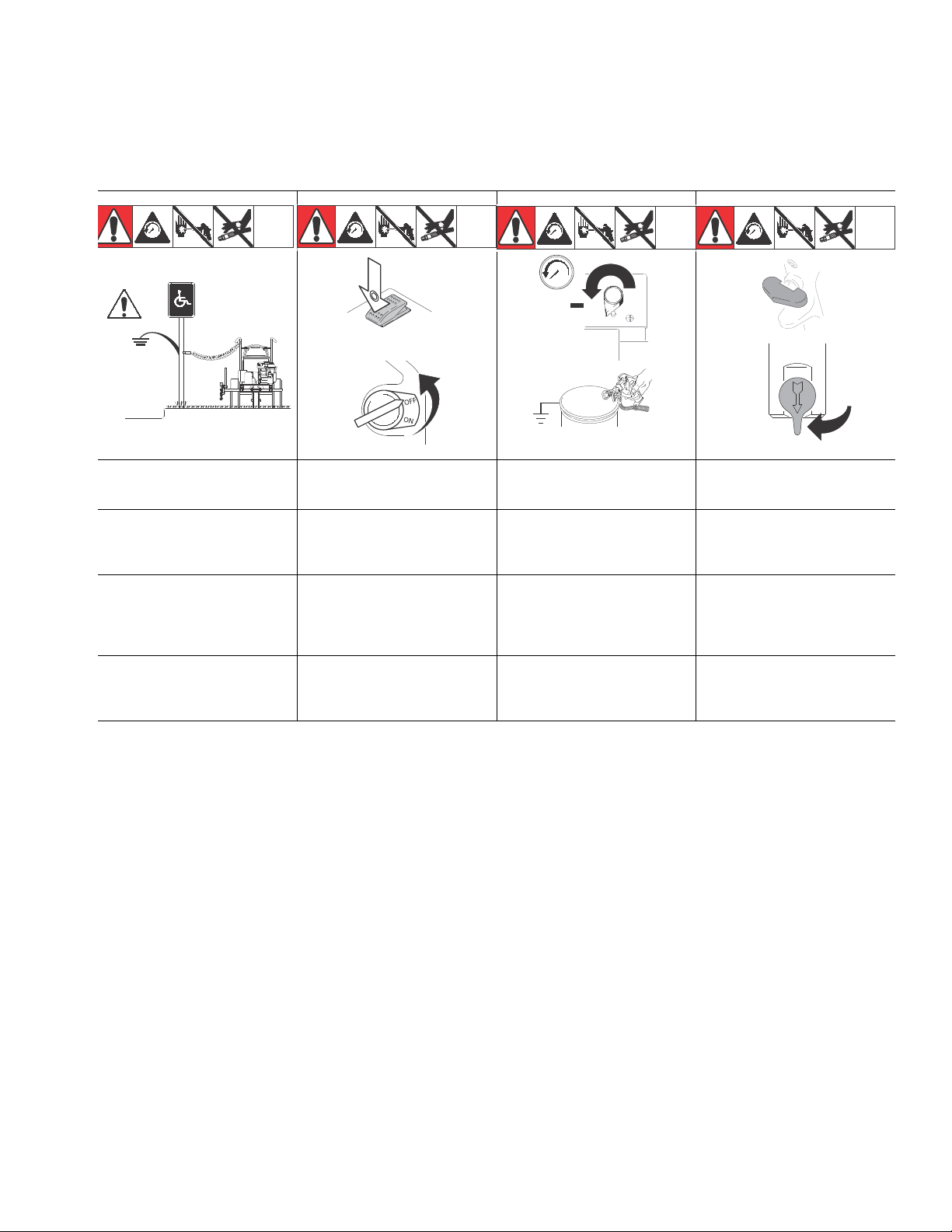 •Follow Pressure Relief Procedure in this manual, when you stop spraying and before cleaning,