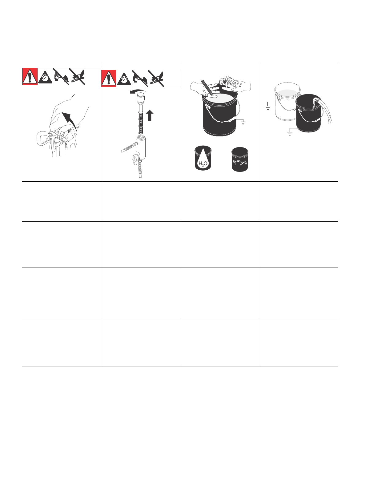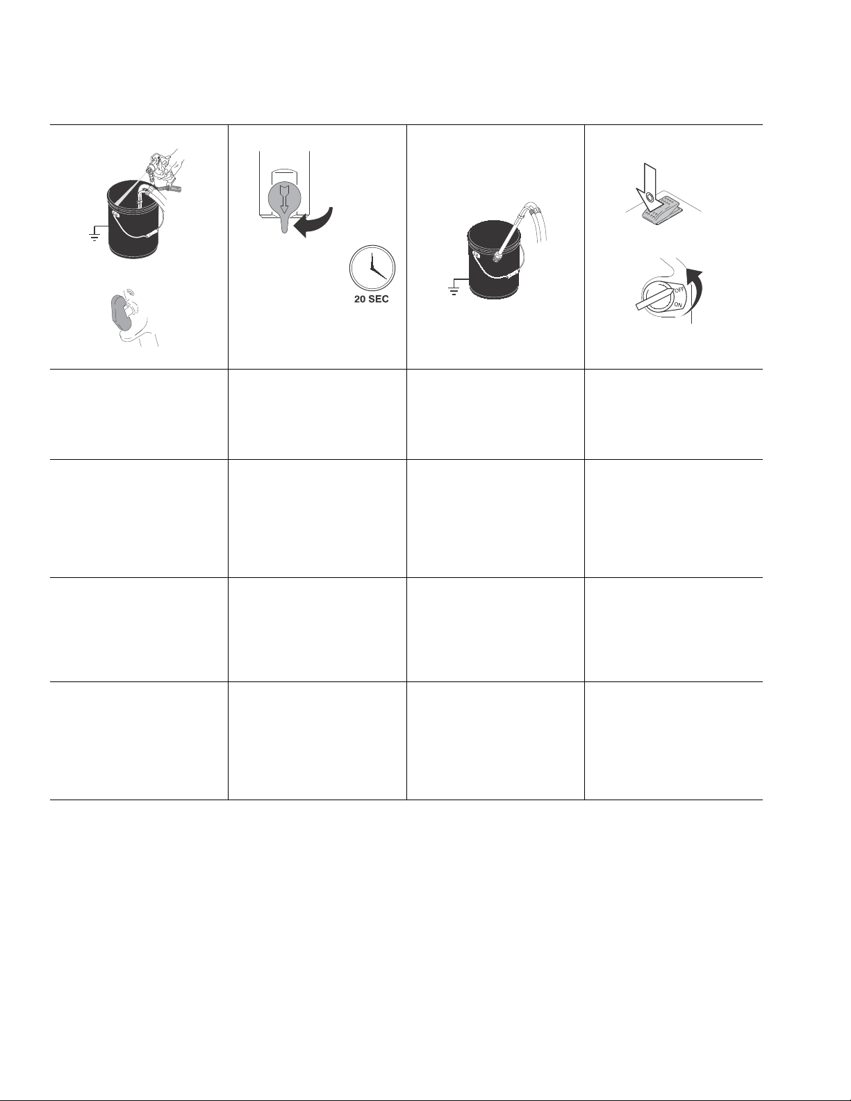 •Hold gun firmly to side of grounded pail when triggering into pail.