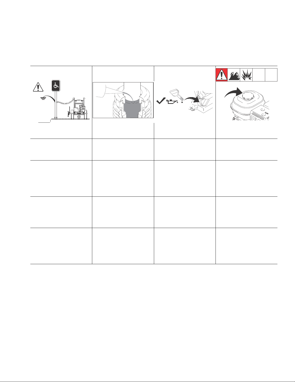 •Do not fill fuel tank while engine is running or hot; shut off engine and let it cool. Fuel is flammable