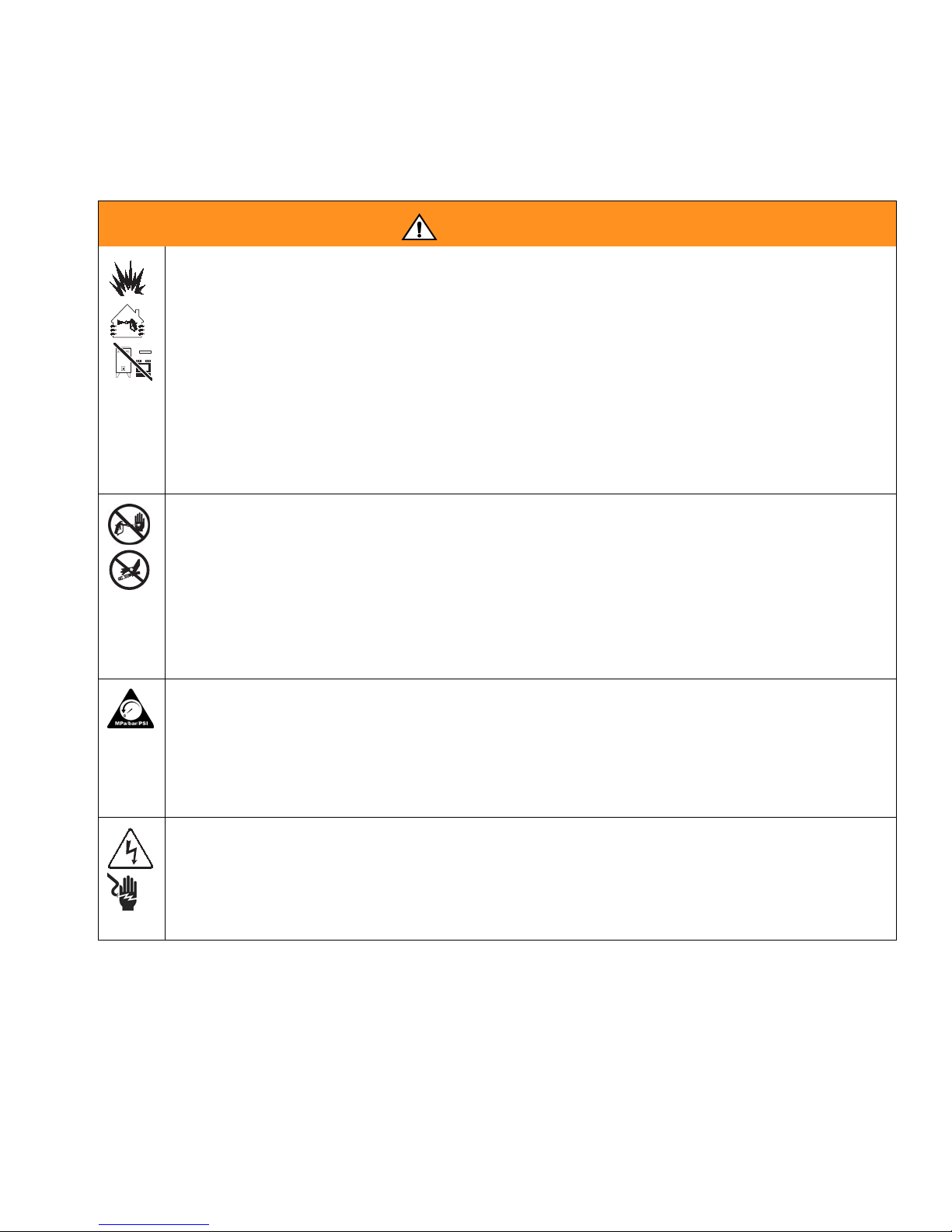 •Follow Pressure Relief Procedure in this manual, when you stop spraying and before cleaning,