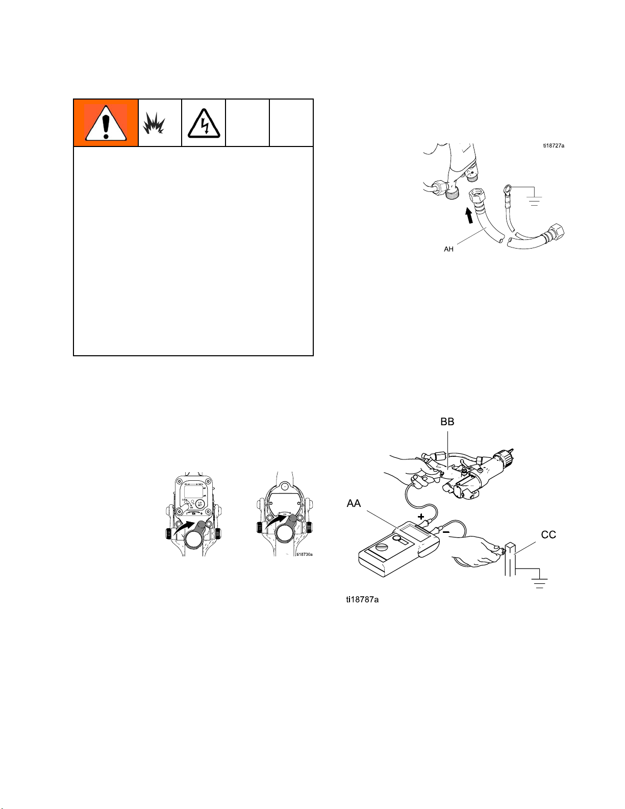 • Ground all equipment, personnel, object being sprayed, and conductive objects in or close to