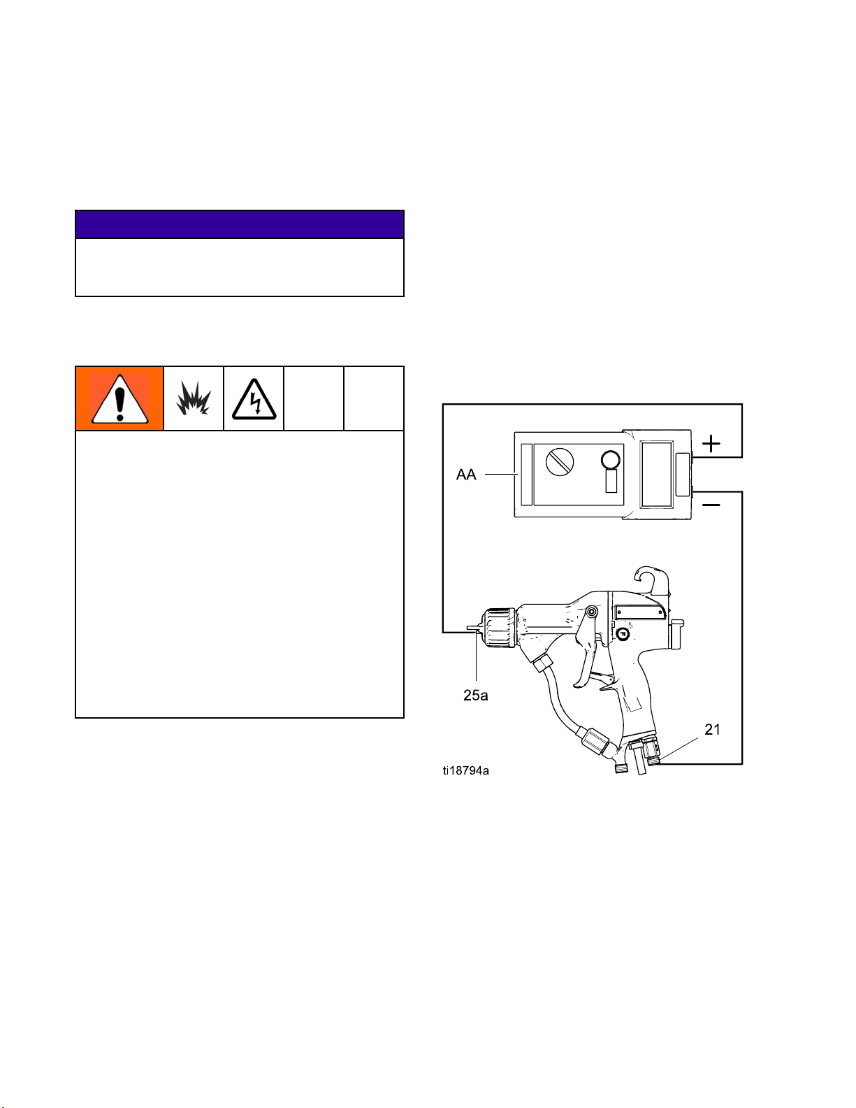 • Electrostatic equipment must be used only by trained, qualified personnel who understand