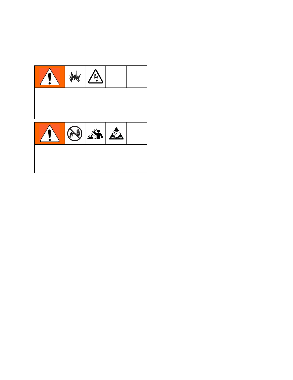 • Follow the Pressure Relief Procedure when you stop spraying and before cleaning, checking,