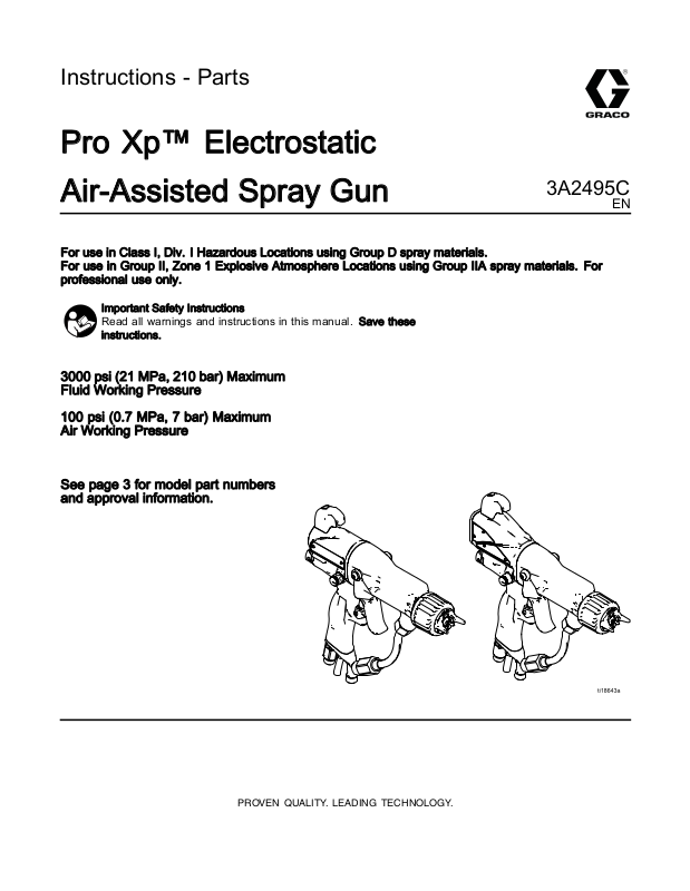 For use in Group II, Zone 1 Explosive Atmosphere Locations using Group IIA spray materials. For