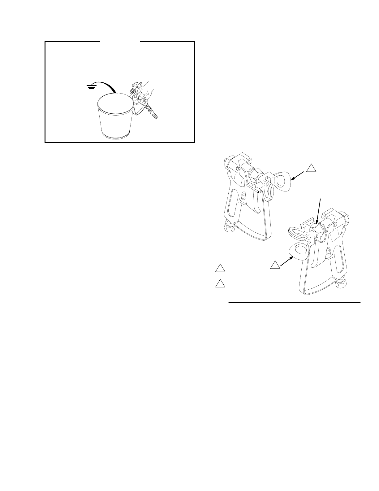 then remove the spray tip. Aim the gun into a metal pail, hold