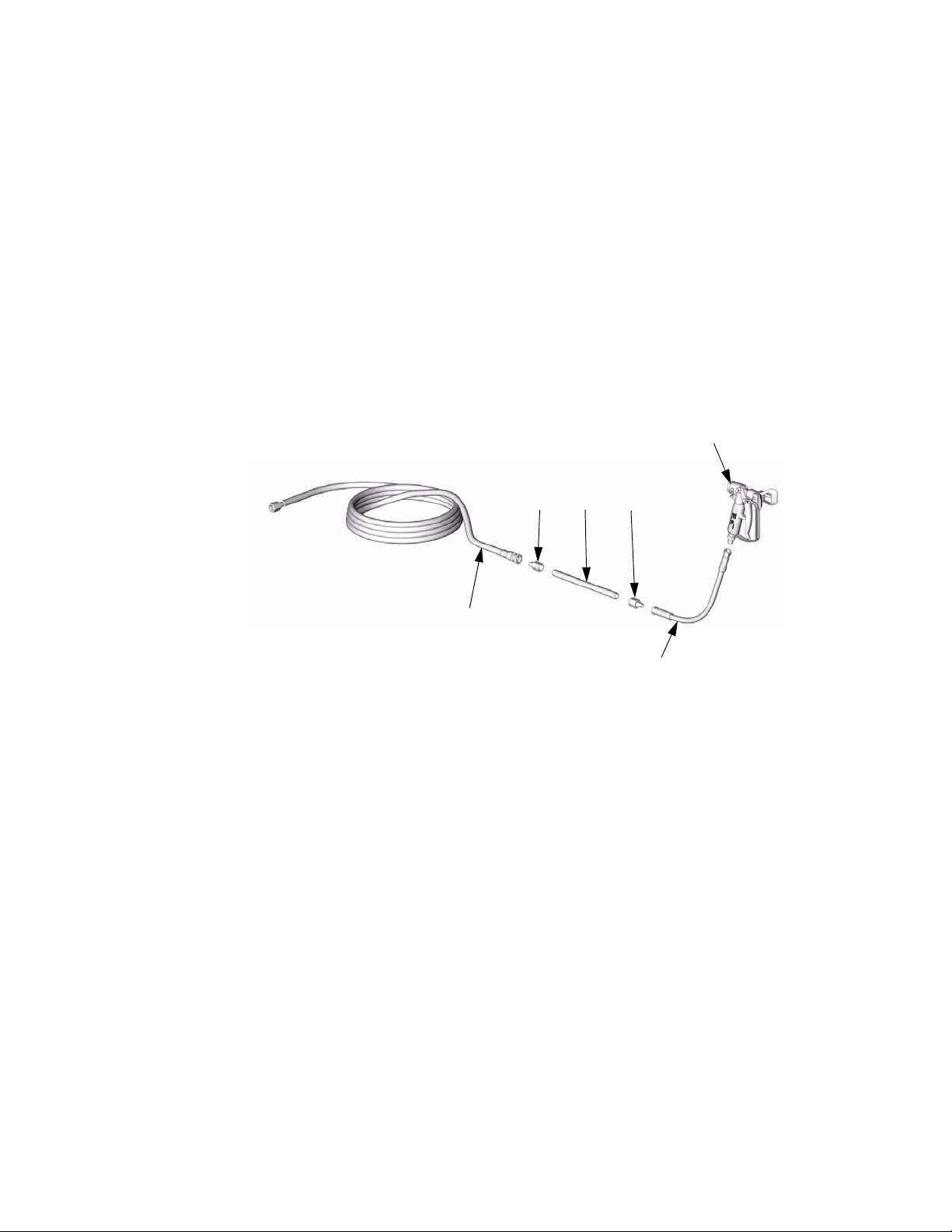 em que mangueiras aquecidas, mangueiras prensadas, e acessórios para spray estão limitados a 5000 psi