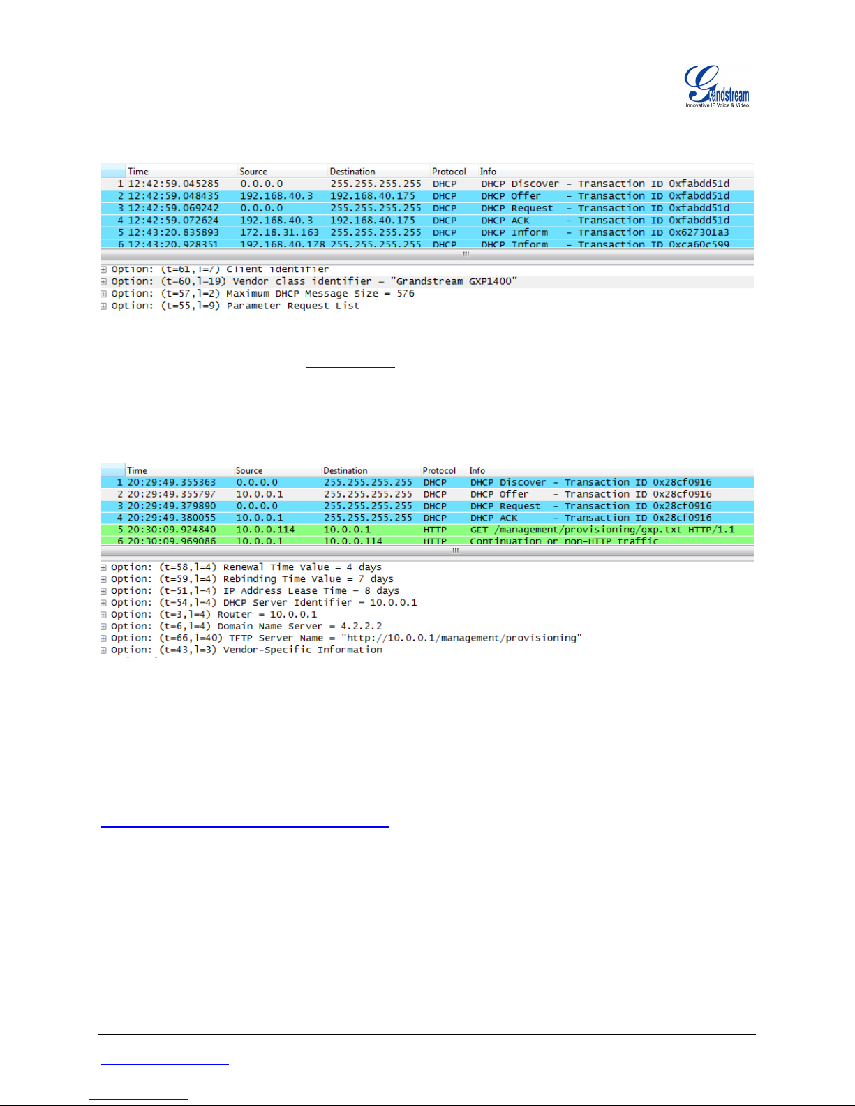 DHCP responses. All Grandstream product families support DHCP Option 66 while the new