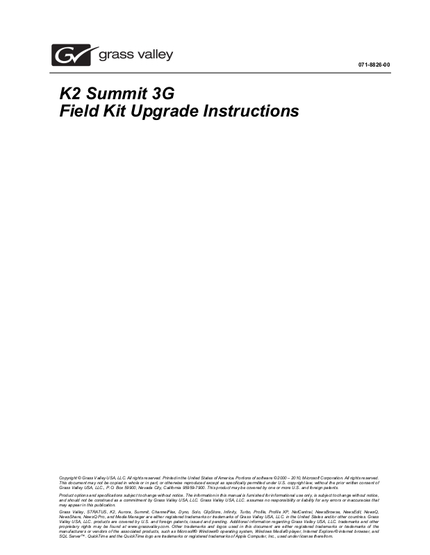 and should not be construed as a commitment by Grass Valley USA, LLC. Grass Valley USA, LLC. assumes no responsibility or liability for any errors or inaccuracies that