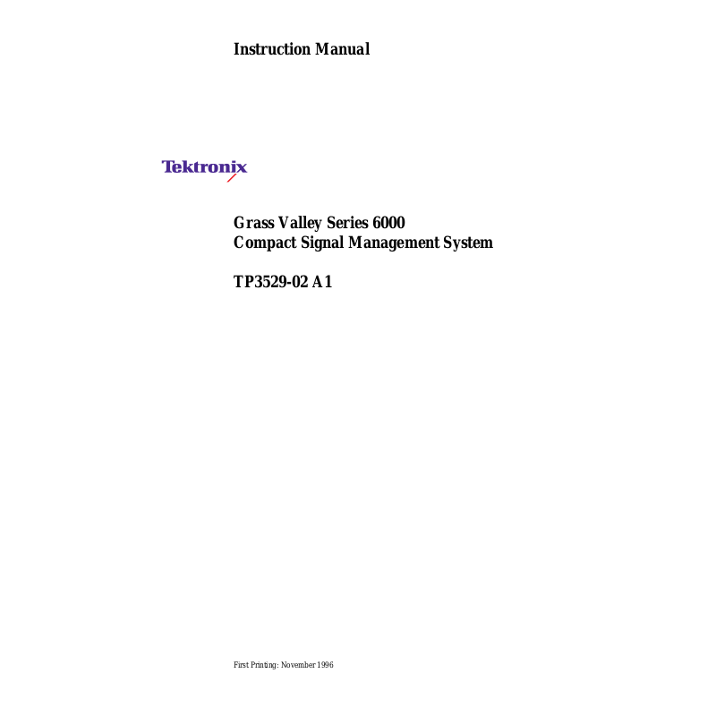 Tektronix, Inc., Video and Networking Division, P.O. Box 1114 Grass Valley, California
