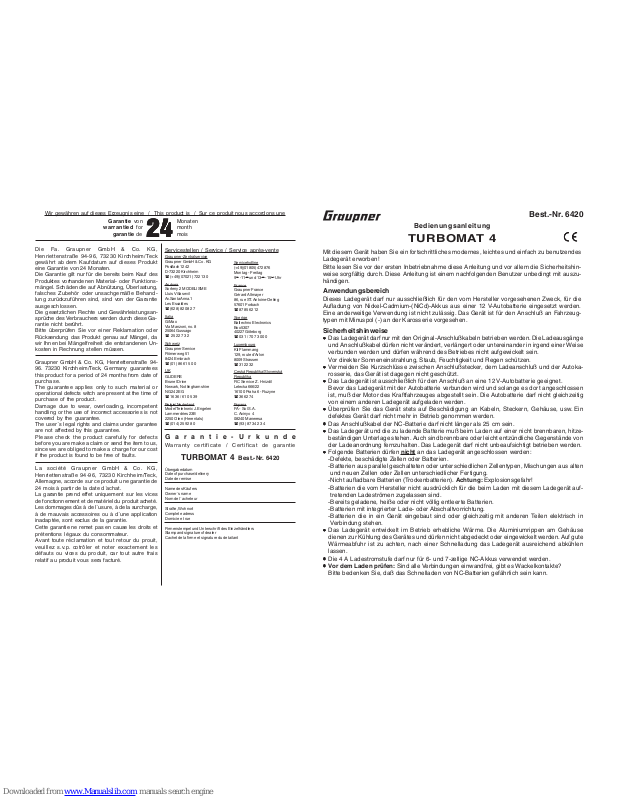 GRAUPNER GmbH & Co. KG D-73230 KIRCHHEIM/TECK ALLEMAGNE