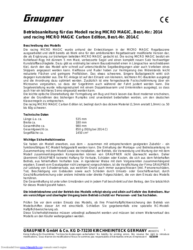 GRAUPNER GmbH & Co. KG D-73230 KIRCHHEIM/TECK GERMANY #0060376