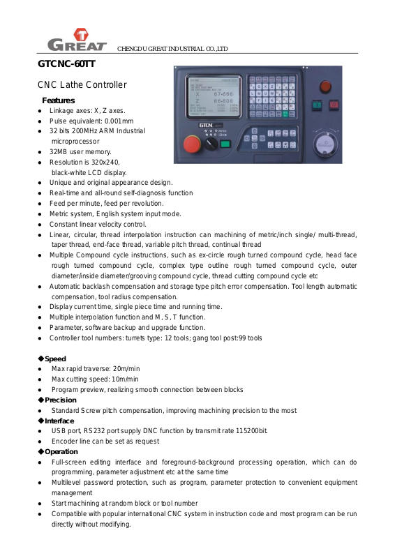 z Compatible with popular international CNC system in instruction code and most program can be run