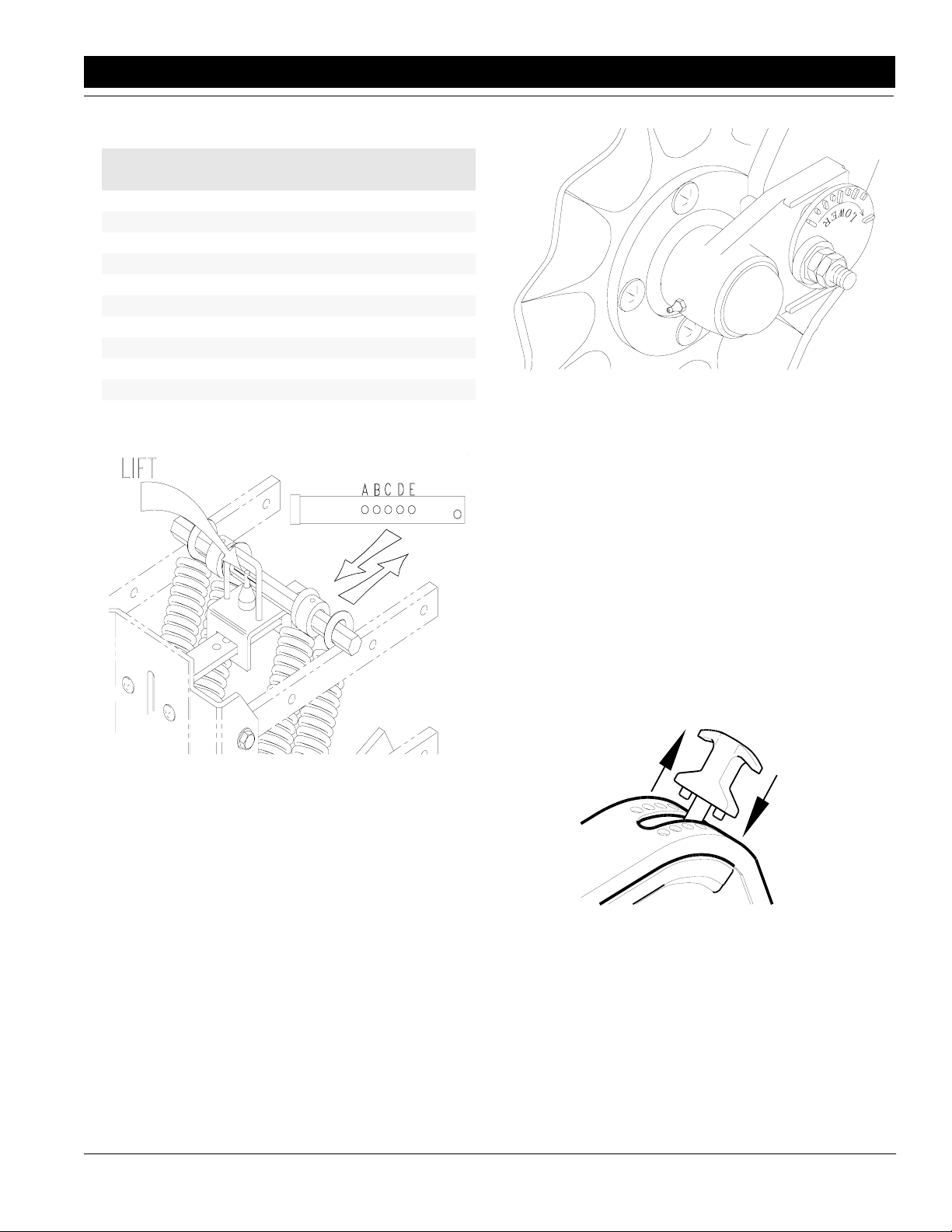 to relieve the tension on the closing wheels. Move opener adjustment bar on heavy and medium down pressure