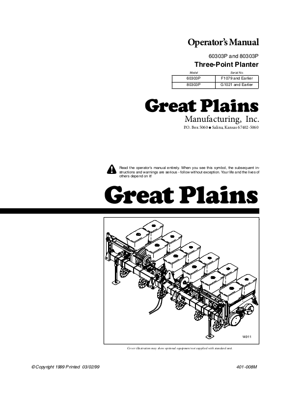 60303P and 80303P Three-Point Planter 401-008M5/15/06Great Plains Mfg., Inc.