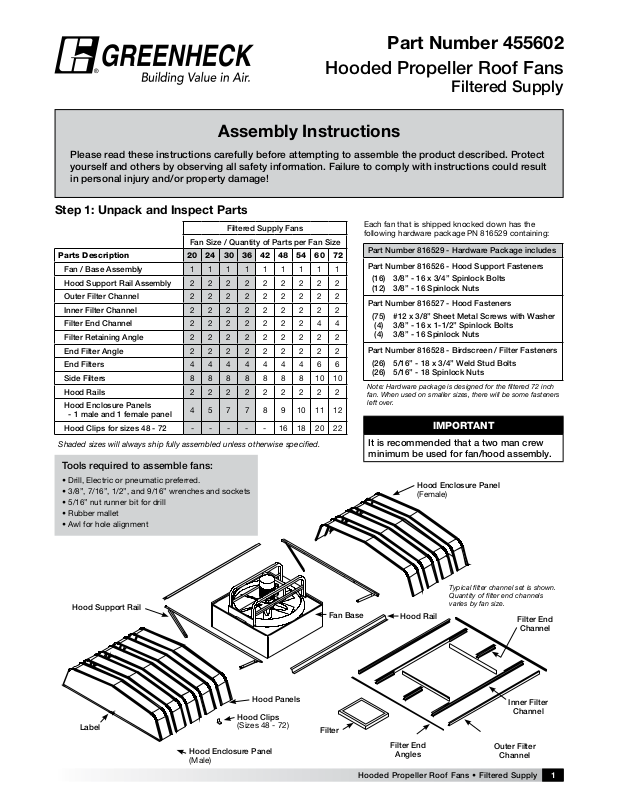 4 455602 • Filtered Supply, Rev. 2, September 2010 Copyright 2010 © Greenheck Fan Corp