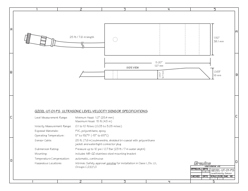 QZ02L-UT-01-PS ULTRASONIC LEVEL-VELOCITY SENSOR SPECIFICATIONS: