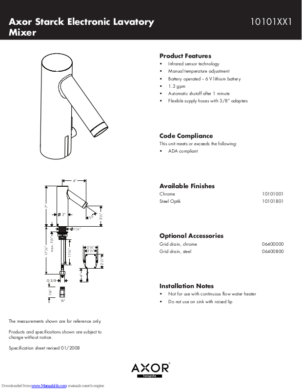Specification sheet revised 01/2008
