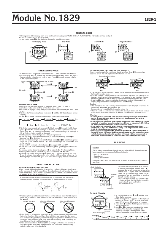 Timekeeping Mode File Mode Alarm Mode Stopwatch Mode