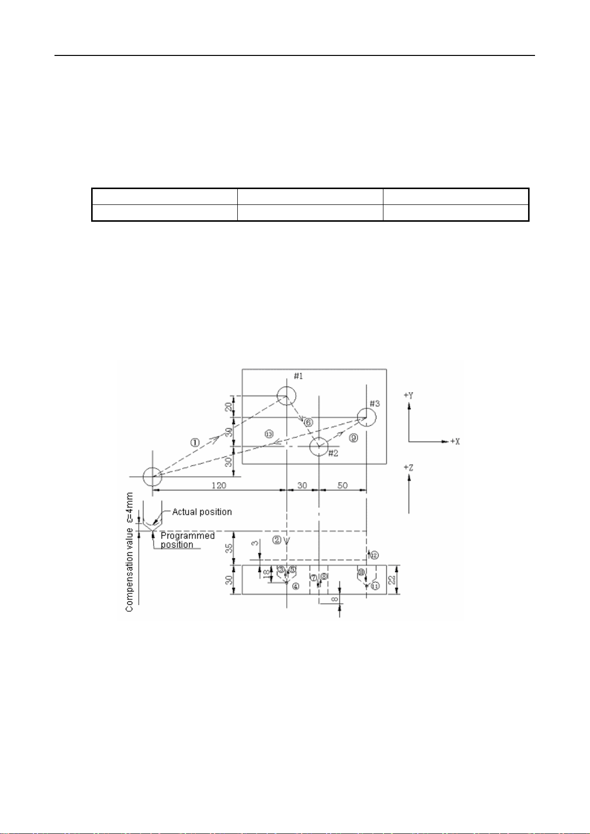 (1) Example of tool length compensation (machining of #1, #2 and #3 holes)
