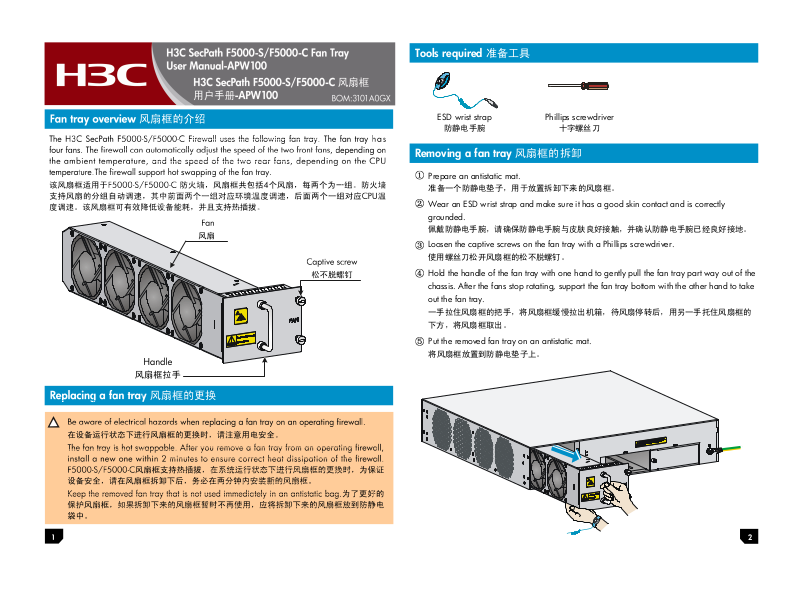 Hold the handle of the fan tray with one hand to gently pull the fan tray part way out of the