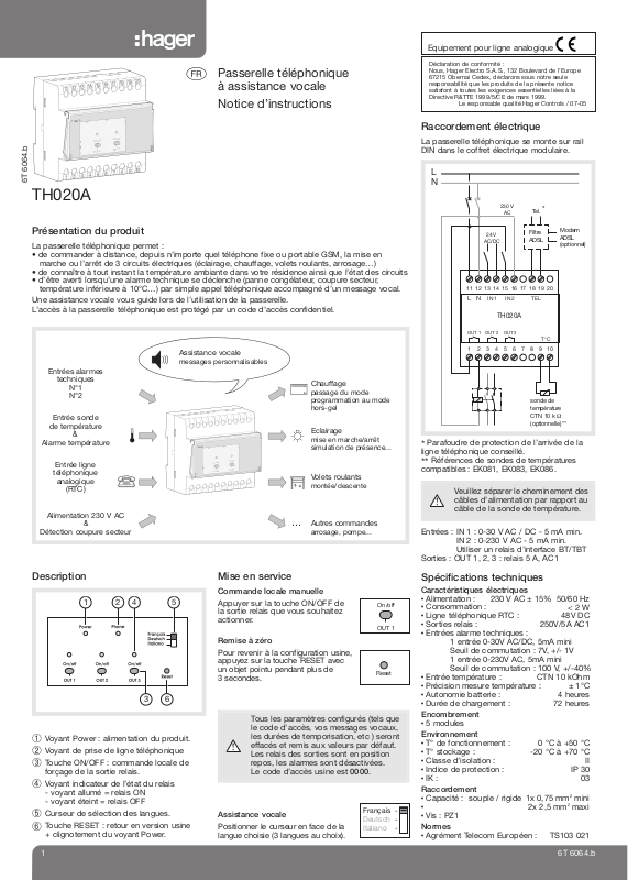 • Agrément Telecom Européen : TS103 021